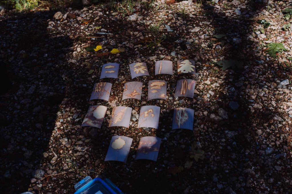 The changeable weather on the day didn’t allow us to lay out our objects in an initial grid as planned. Instead, we moved straight into lumen printing once the weather cleared and the sun came out; a reminder that sometimes life doesn’t follow the order we expect, and we must respond in the moment.