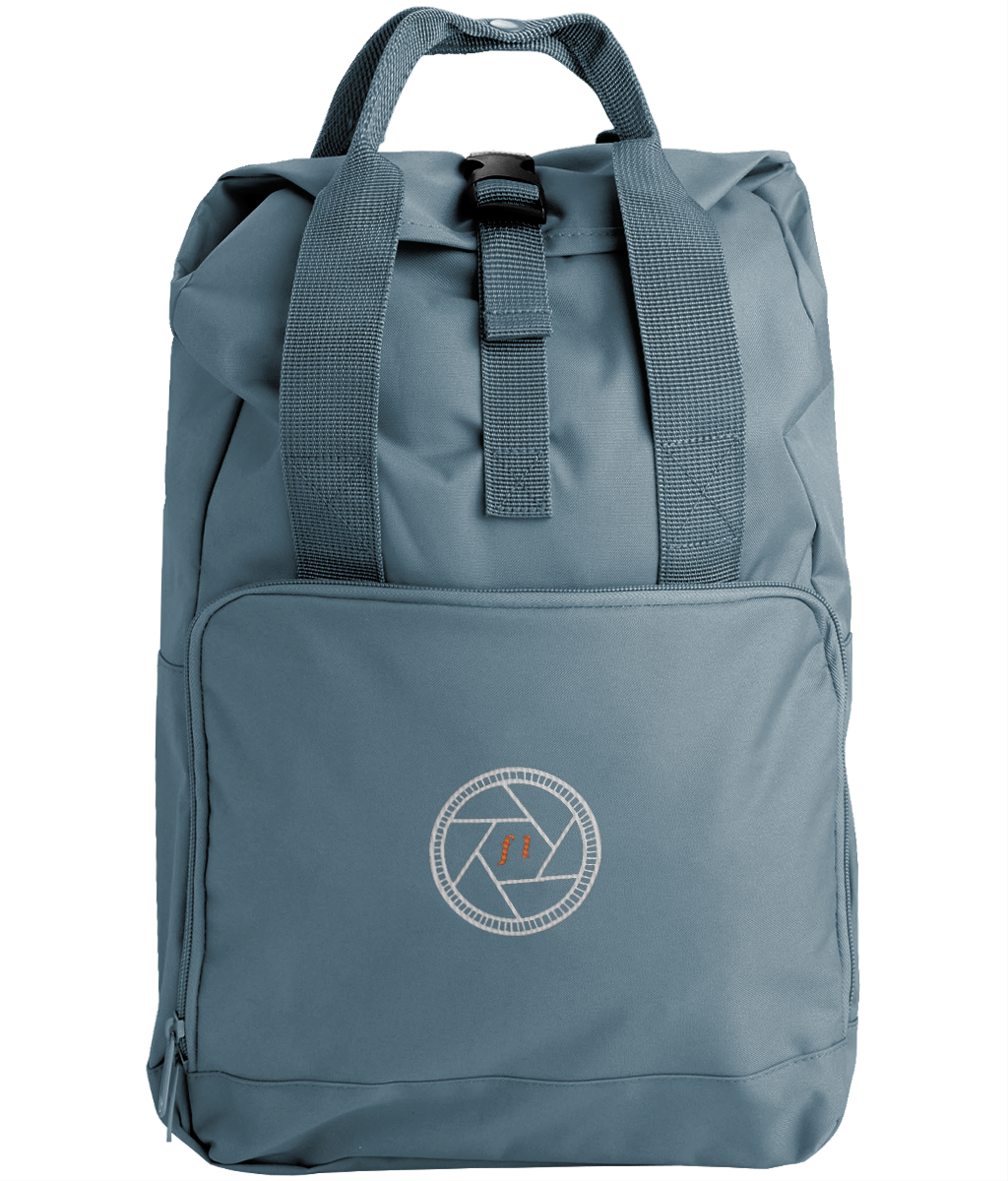Embroidered Twin Handle Roll-Top Backpack with Focused Light Logo